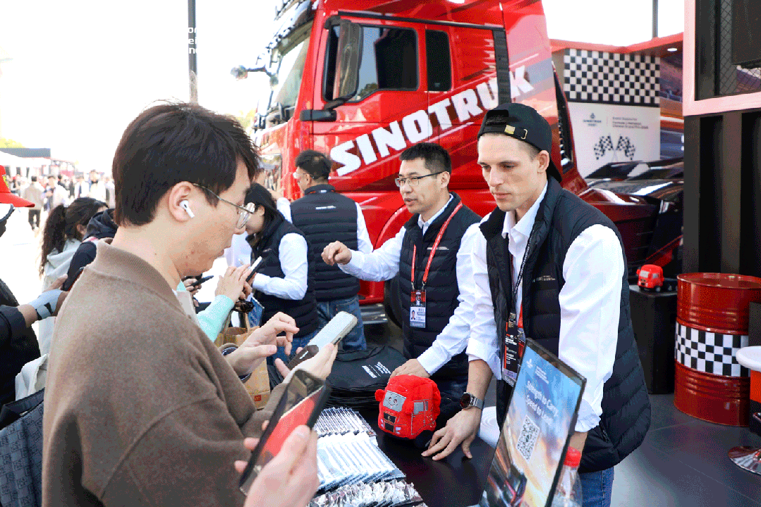 Being a weekend, the exhibition area welcomed batches of adorable ‘little people’ who paused to observe and take photos in front of Chinese-made trucks. Before Sinotruk SITRAK, their bodies were so small, their faces so tender, while SITRAK gazed at them gently like a big brother, protecting them. During this warm encounter today, the seeds of Chinese intelligent manufacturing may have been planted, giving these ‘little people’ big ‘Chinese heavy-duty truck’ dreams.